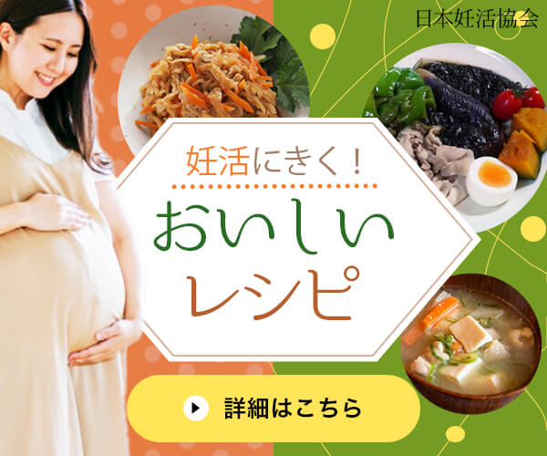 このデザインは、妊活をサポートする「栄養バランスの良いレシピ」を紹介するバナー広告です。